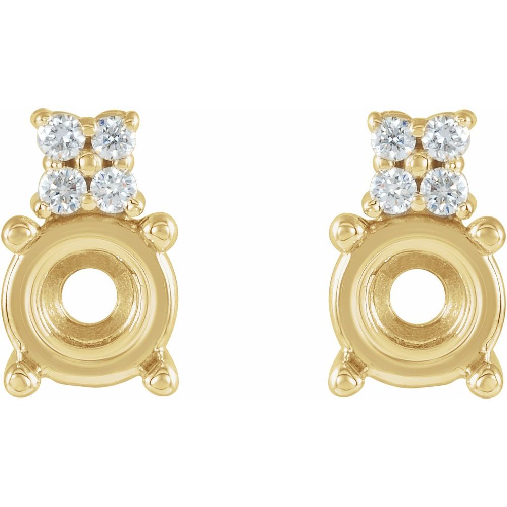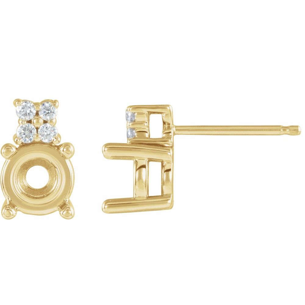 14k Yellow Gold 4.5mm Round Shape Diamond Semi-Set Earrings Mounting (Mounting Only, Not All Stones Included, 0.07 cttw, G-H, I1)