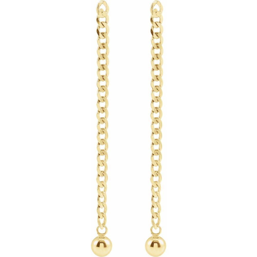 14k Yellow Gold Curb Chain Drop Dangle Earrings