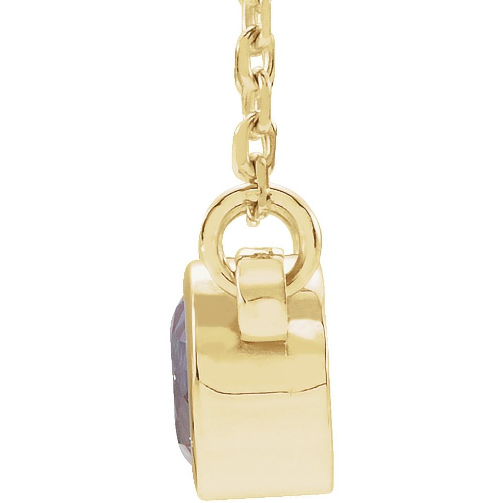Description: 14k Yellow Gold 3mm Round Lab-Grown Alexandrite Bezel-Set Solitaire 16" Necklace