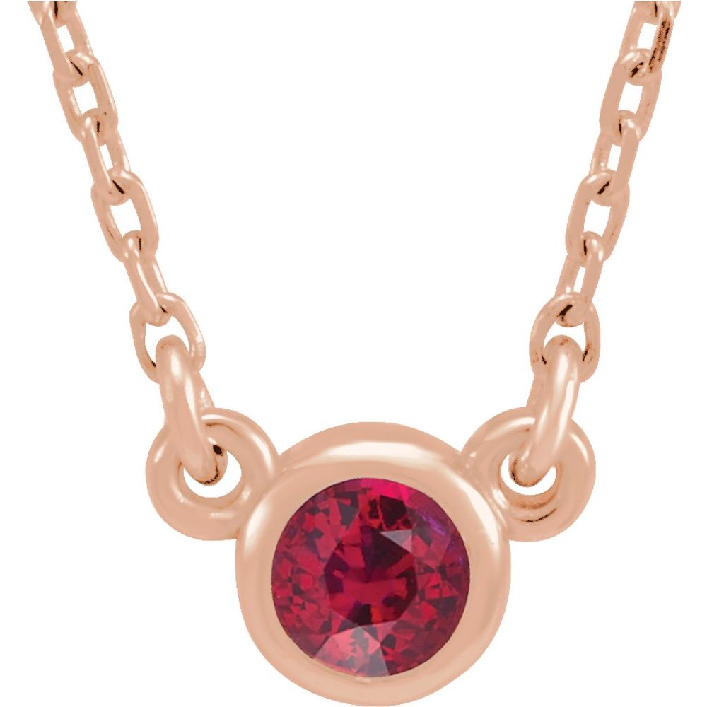 Description: 14k Rose Gold 3mm Round Ruby Bezel-Set Solitaire 16" Necklace
