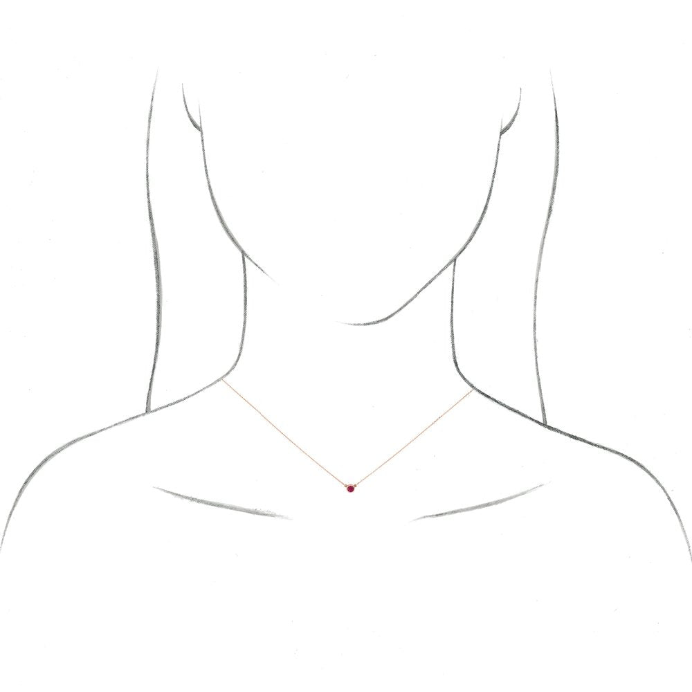 14k Rose Gold 3mm Round Shape Ruby Bezel-Set Solitaire Necklace (13.5x5.7mm), 16"