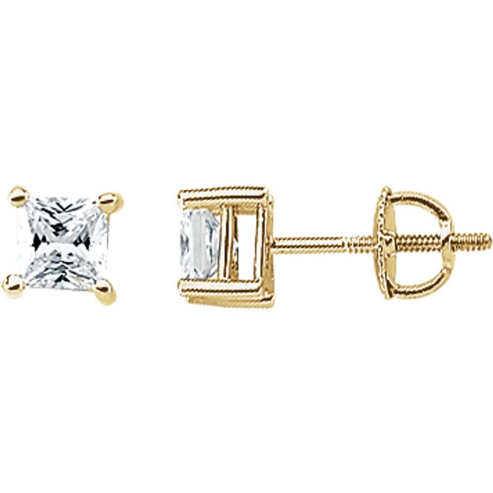 14k Yellow Gold 4.5x4.5mm Princess Square Shape Cubic Zirconia Stud Earrings