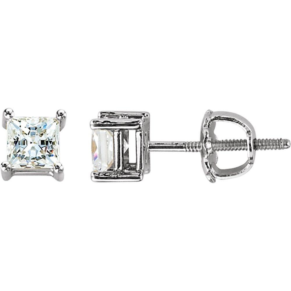 14k White Gold 4x4mm Princess Square Shape Cubic Zirconia Stud Earrings