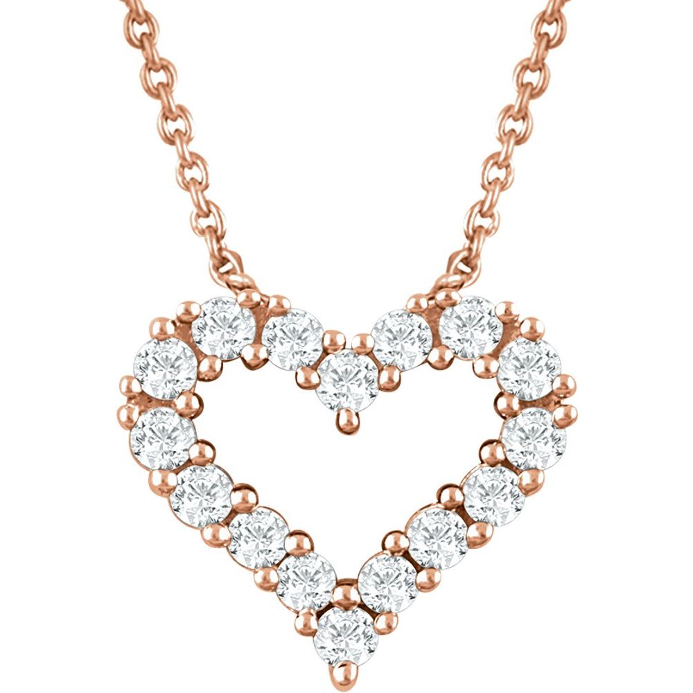 Description: 14k Rose Gold 1/4 cttw Diamond Heart 18" Necklace