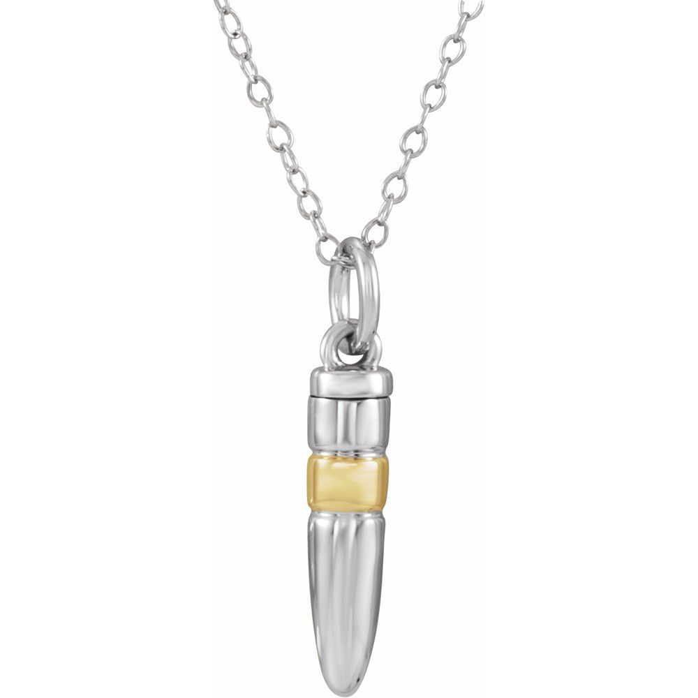 Description: 10k White Gold/Yellow Bullet Ash Holder 18" Necklace