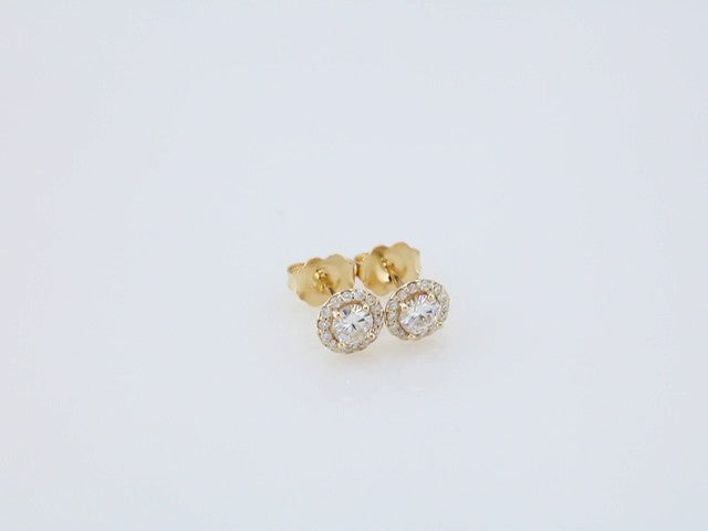 14k Yellow Gold 5mm Round Shape Forever One Moissanite and 1/8 cttw Diamond Stud Earrings (G-H, I1)