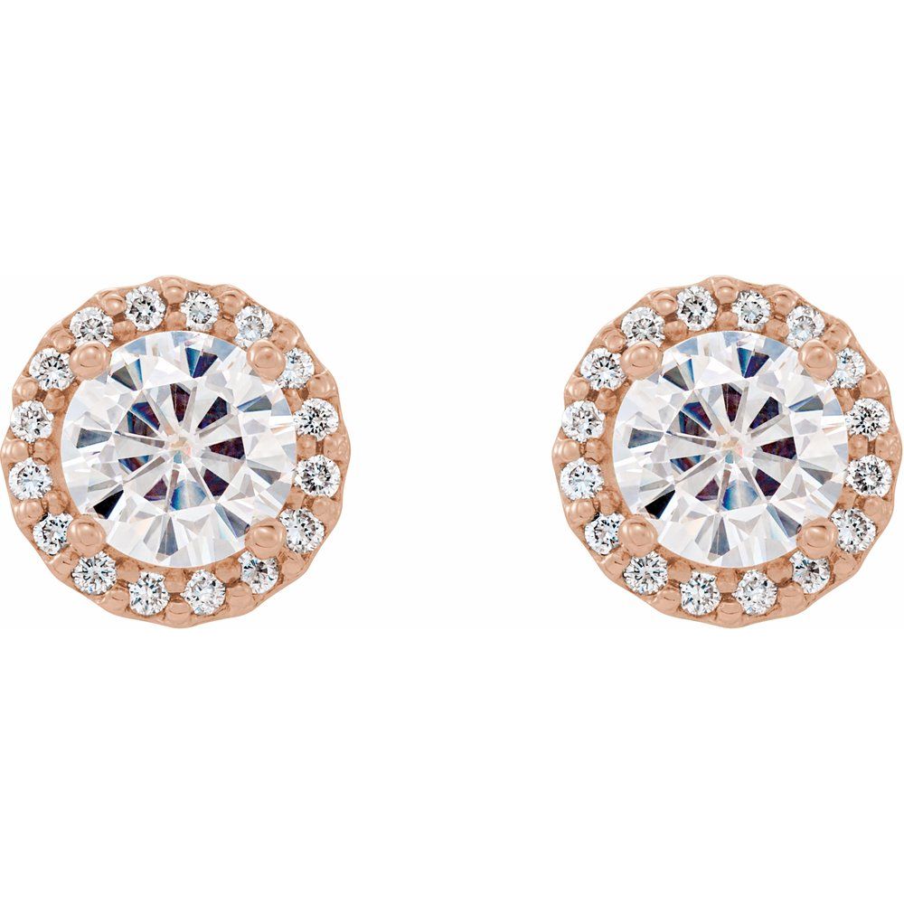 14k Rose Gold 5mm Round Shape Forever One Moissanite and 1/8 cttw Diamond Stud Earrings (G-H, I1)