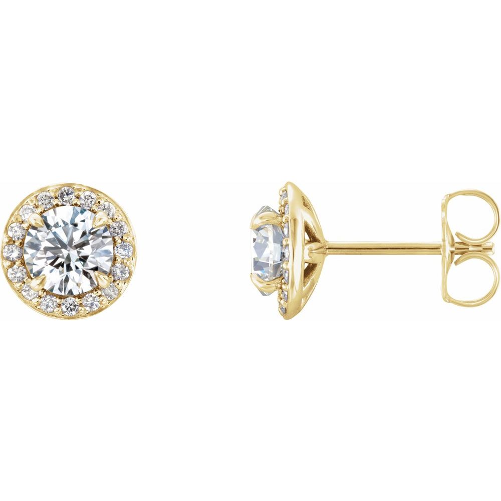 14k Yellow Gold 4mm Round Shape Forever One Moissanite and 1/8 cttw Diamond Stud Earrings (G-H, I1)