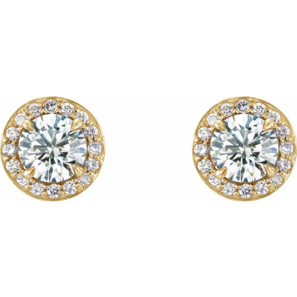 14k Yellow Gold 6mm Round Shape Forever One Moissanite and 1/5 cttw Diamond Stud Earrings (G-H, I1)