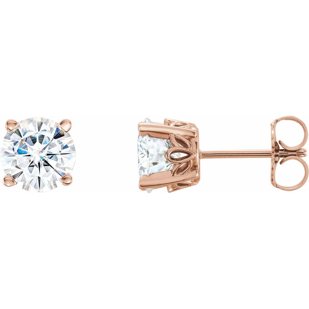 14k Rose Gold 6.5mm Round Shape Forever One Moissanite Stud Earrings