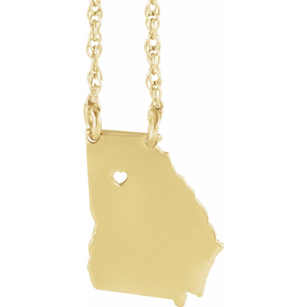 14k Yellow Gold Plated Sterling Silver Georgia State with Heart-Pierced City Personalized Necklace (14.5x11.8mm), 18"