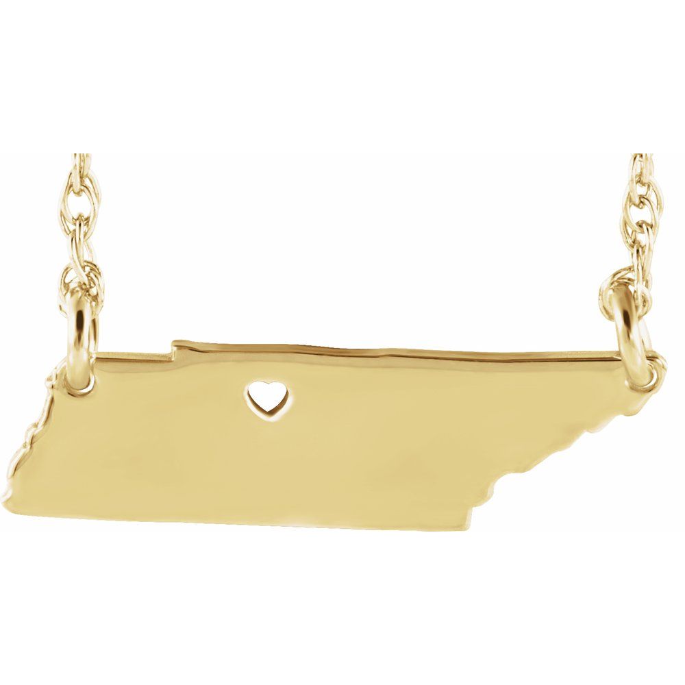 10k Yellow Gold Tennessee State with Heart-Pierced City Personalized Necklace (20x5.8mm), 18"