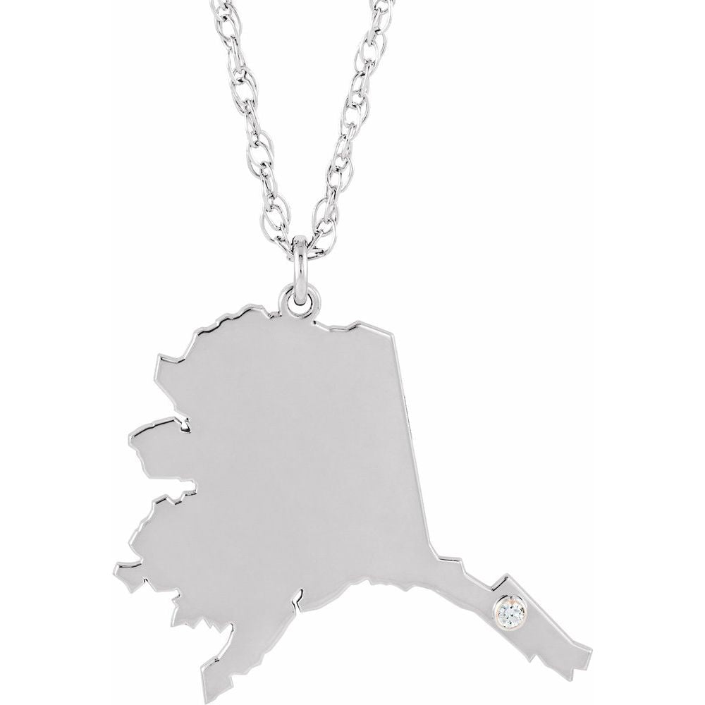 Description: 10k White Gold Alaska .015 cttw Diamond State with Accented City Necklace