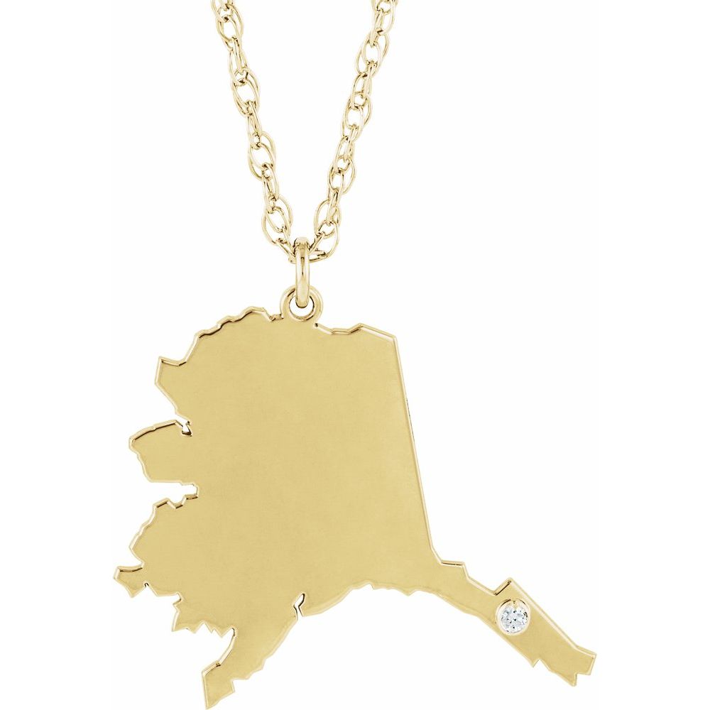 Description: 10k Yellow Gold Alaska .015 cttw Diamond State with Accented City Necklace