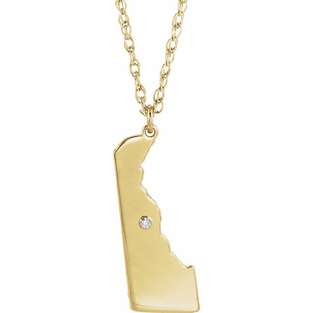 Description: 10k Yellow Gold Delaware .015 cttw Diamond State with Accented City Necklace