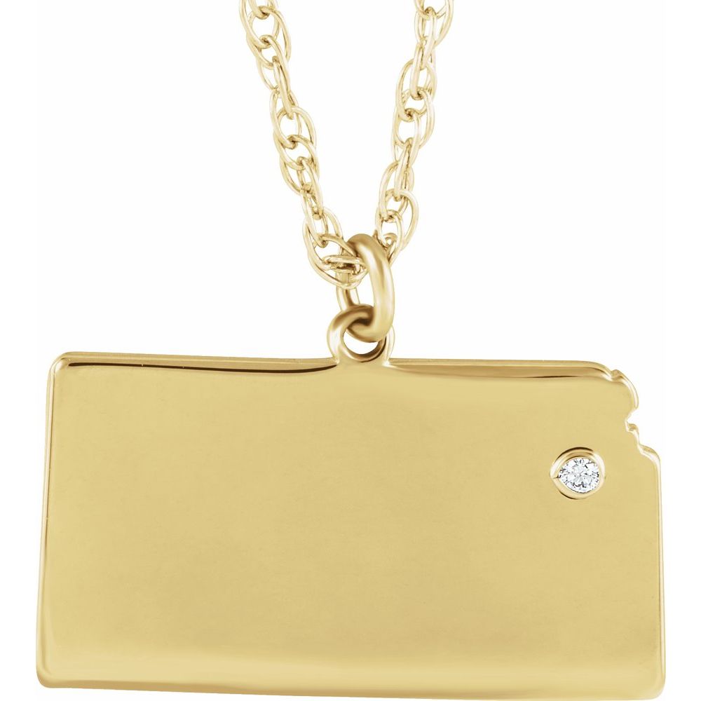 Description: 10k Yellow Gold Kansas .015 cttw Diamond State with Accented City Necklace