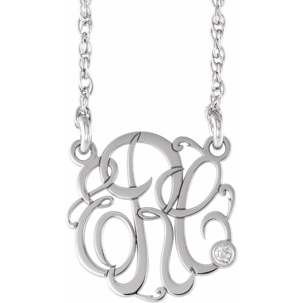10k White Gold 1.5mm Round Shape Cubic Zirconia 3 Initial Script Monogram Personalized Necklace (25mm), 18"