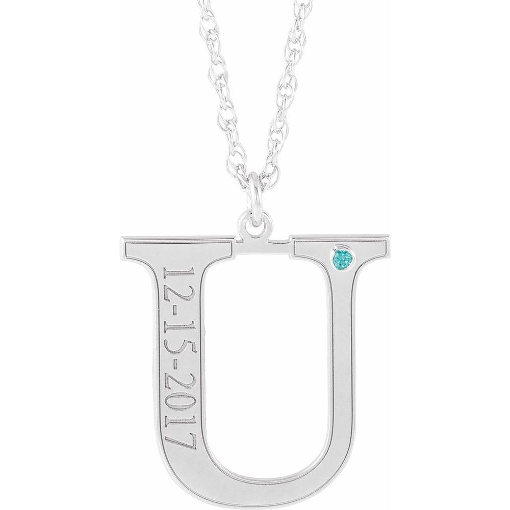 Description: Rhodium-Plated Sterling Silver December Engravable Birthstone Initial U Necklace
