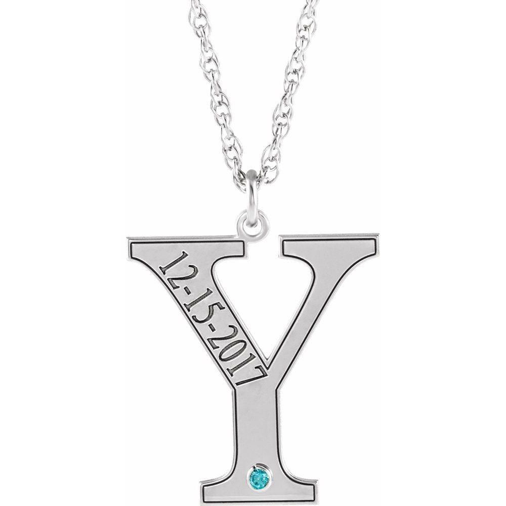 Description: Rhodium-Plated Sterling Silver December Engravable Birthstone Initial Y Necklace
