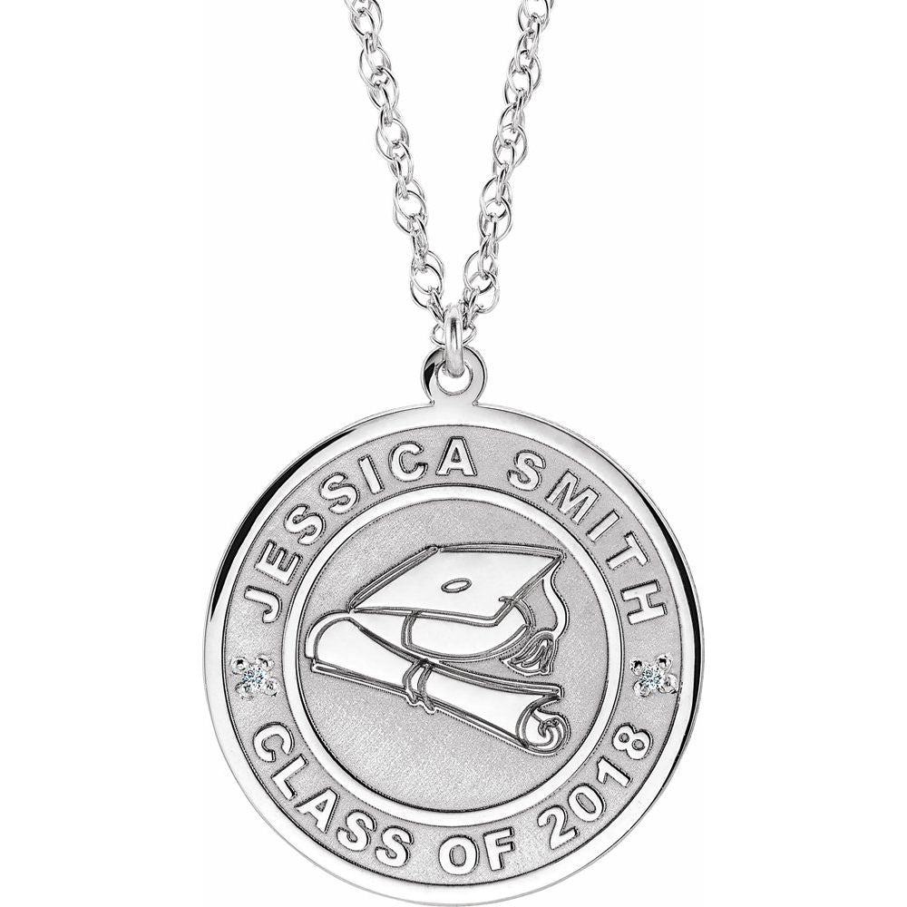 Description: Sterling Silver .01 cttw Diamond Personalized Graduation Necklace