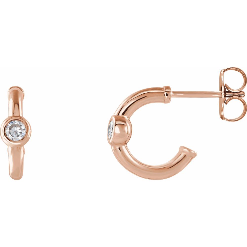 14k Rose Gold 2.5mm Round Shape Forever One Moissanite Hoop Earrings