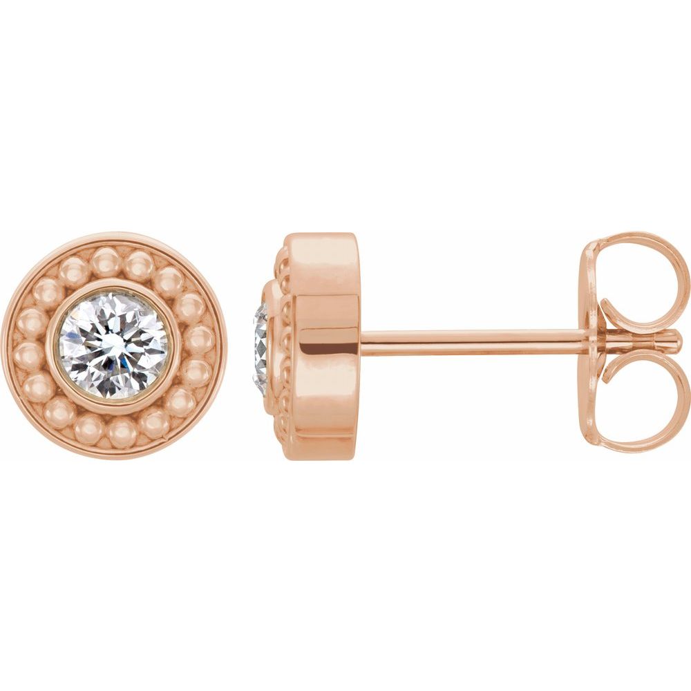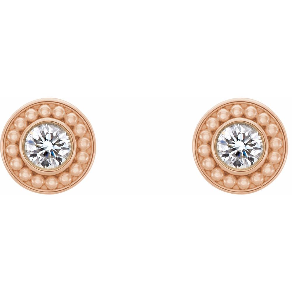 14k Rose Gold 3mm Round Shape Forever One Moissanite Beaded Stud Earrings