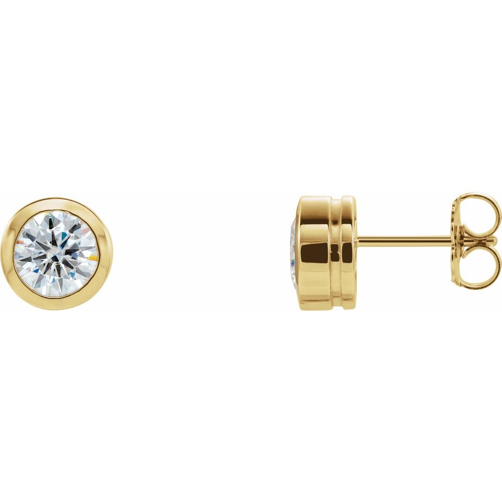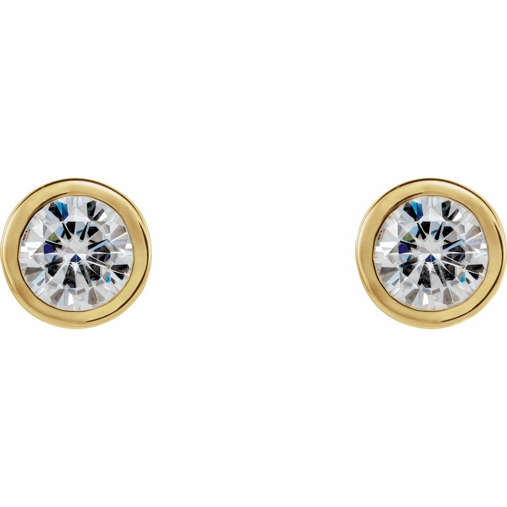 14k Yellow Gold 5mm Round Shape Forever One Moissanite Stud Earrings