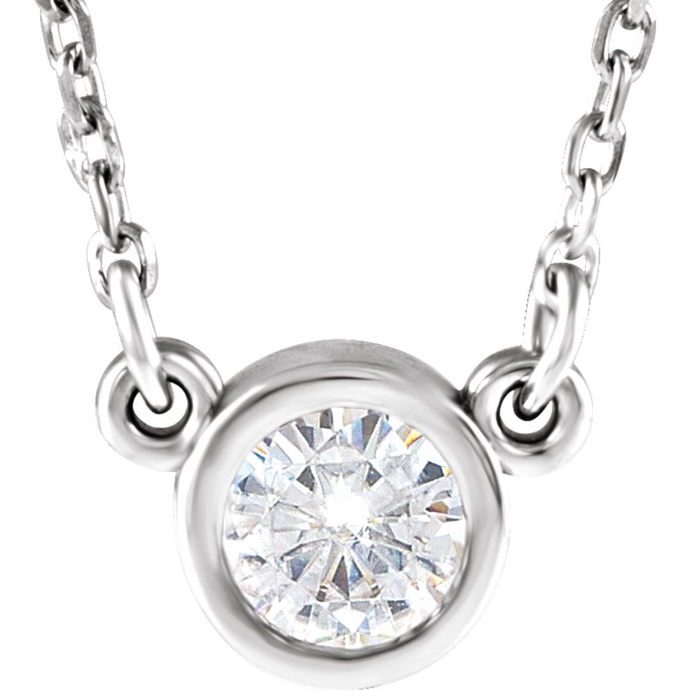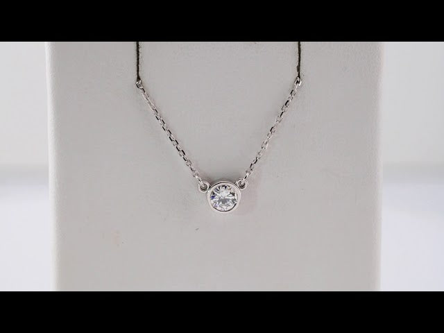 14k White Gold 4mm Round Shape Moissanite Solitaire Necklace (7.9x5.3mm), 18"