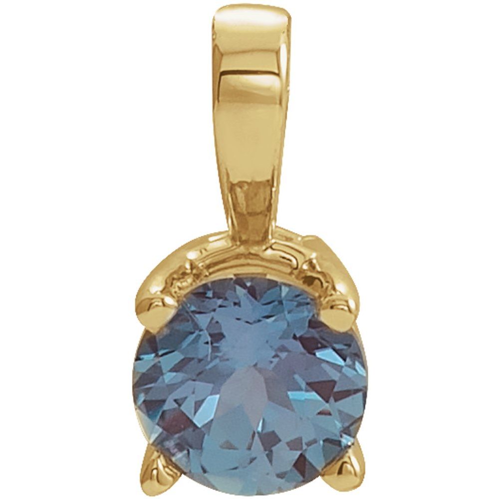 Description: 14k Yellow Gold 3mm Round Lab-Grown Alexandrite Birthstone Pendant