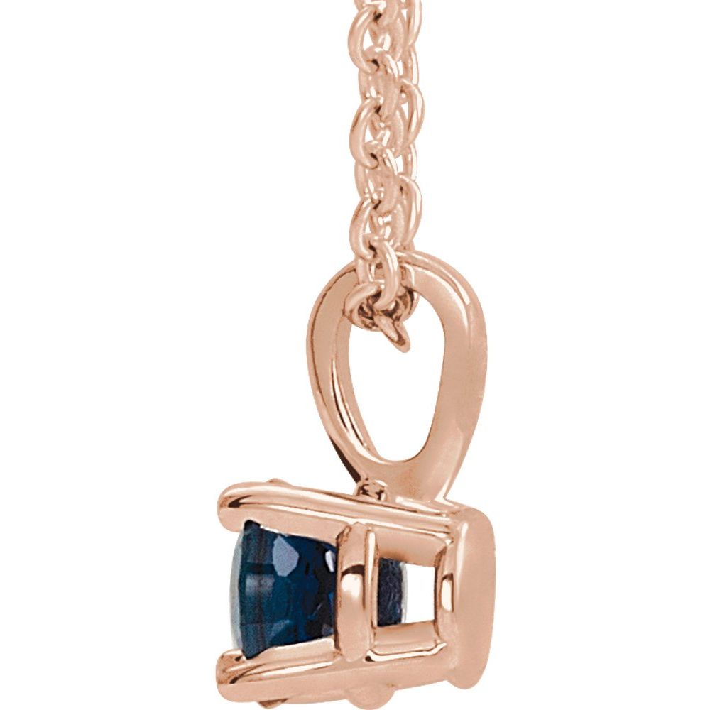 Description: 14k Rose Gold 3mm Round Blue Sapphire Birthstone Pendant