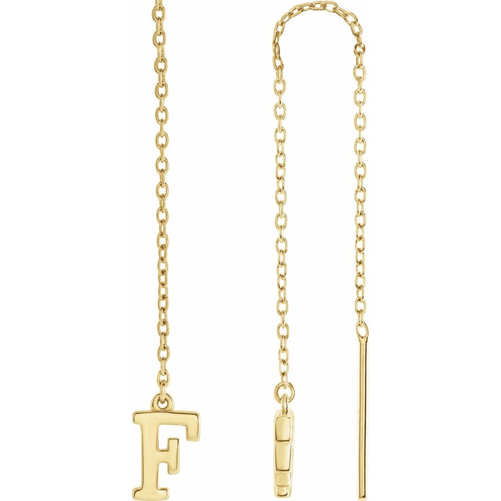 14k Yellow Gold Single Initial F Chain Drop Dangle Earring (Only One Earring Piece Sold, Not the Pair)