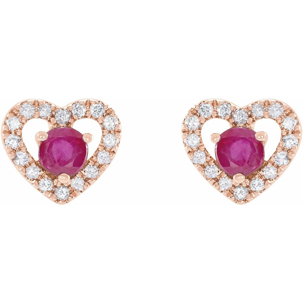 14k Rose Gold Ruby and 1/10 cttw Diamond Heart Shape Stud Earrings (H-I, I1)