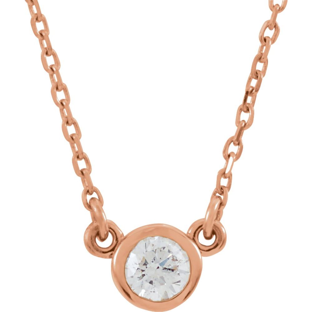 Description: 14k Rose Gold 3mm Moissanite Solitaire 18" Necklace