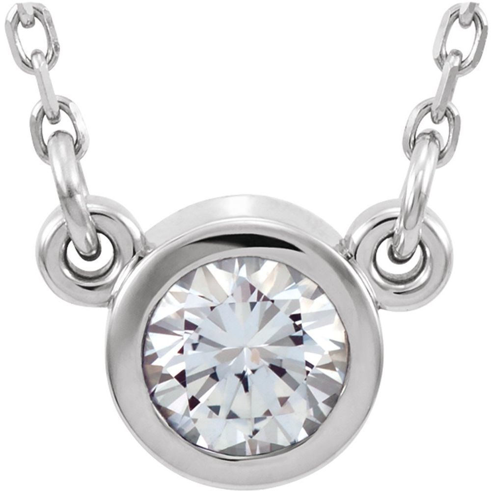 Sterling Silver Round Shape 4mm Moissanite Solitaire Necklace (13.5x5.7mm), 18"