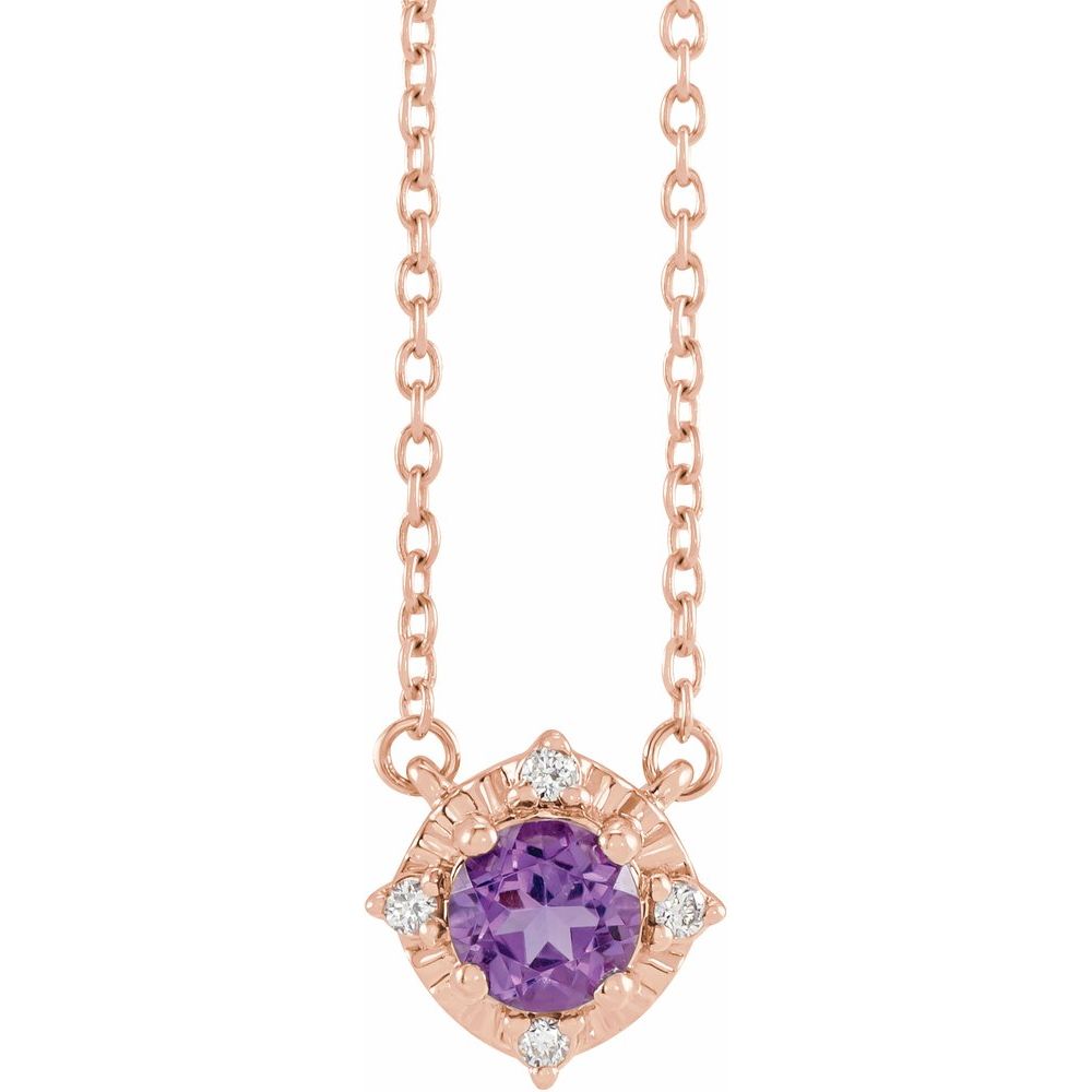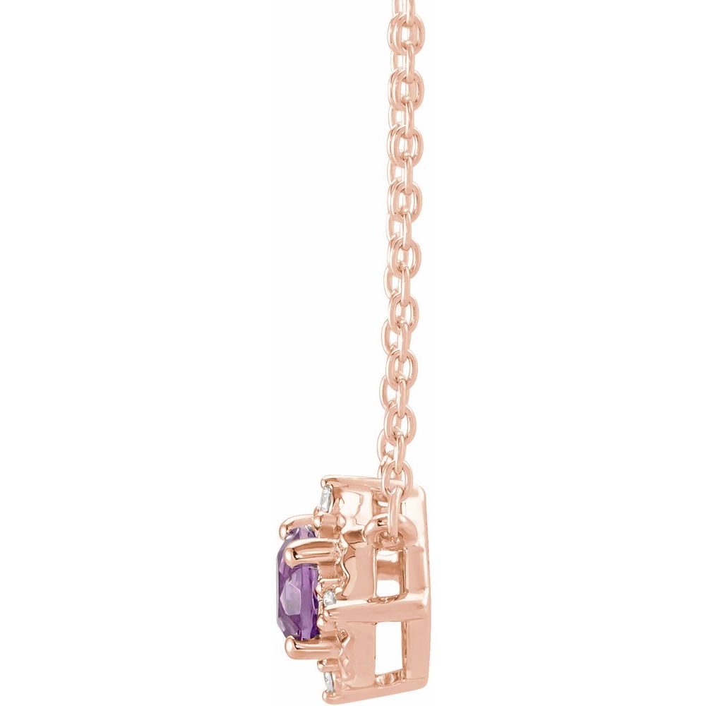 Description: 14k Rose Gold Amethyst and .04 cttw Diamond Halo-Style 18" Necklace