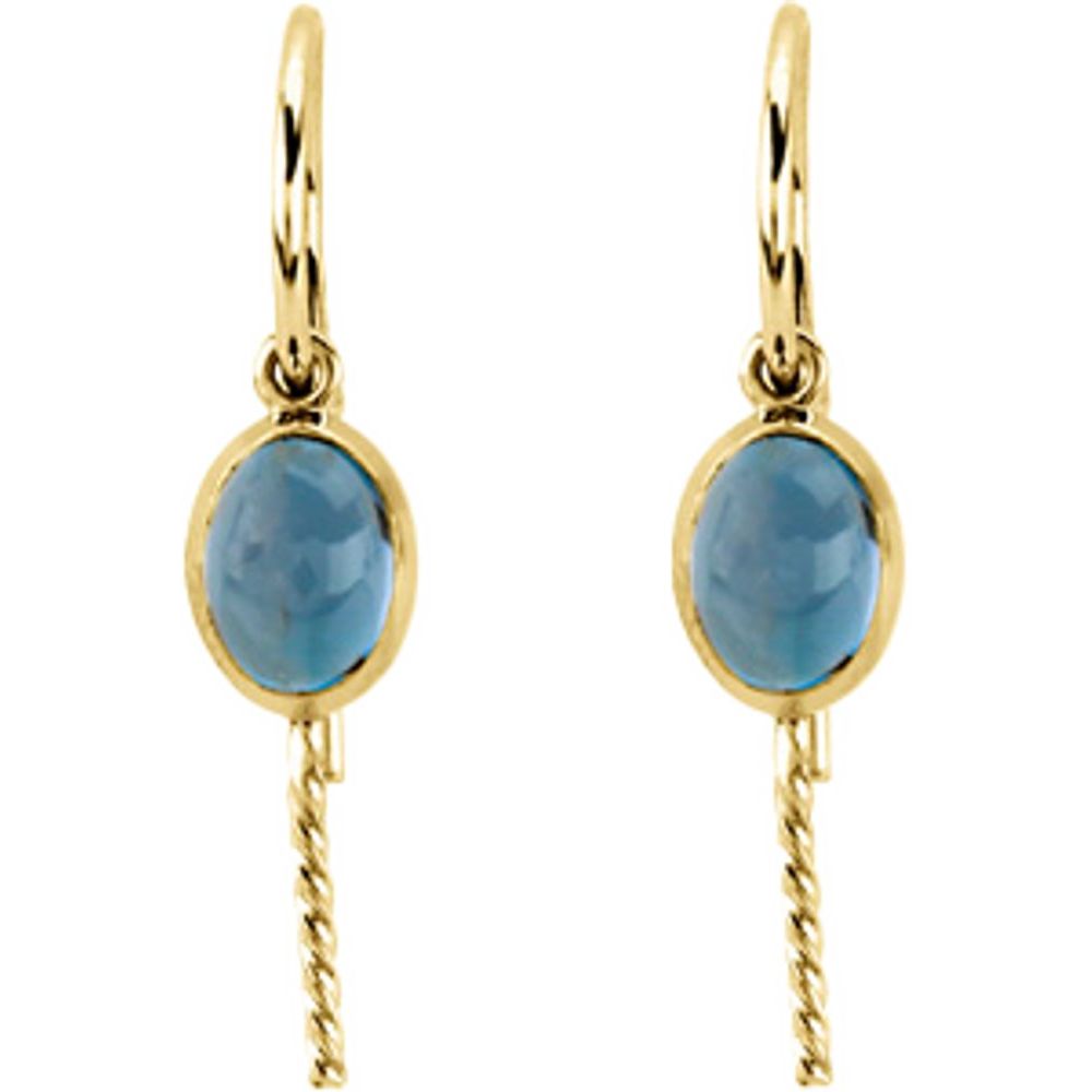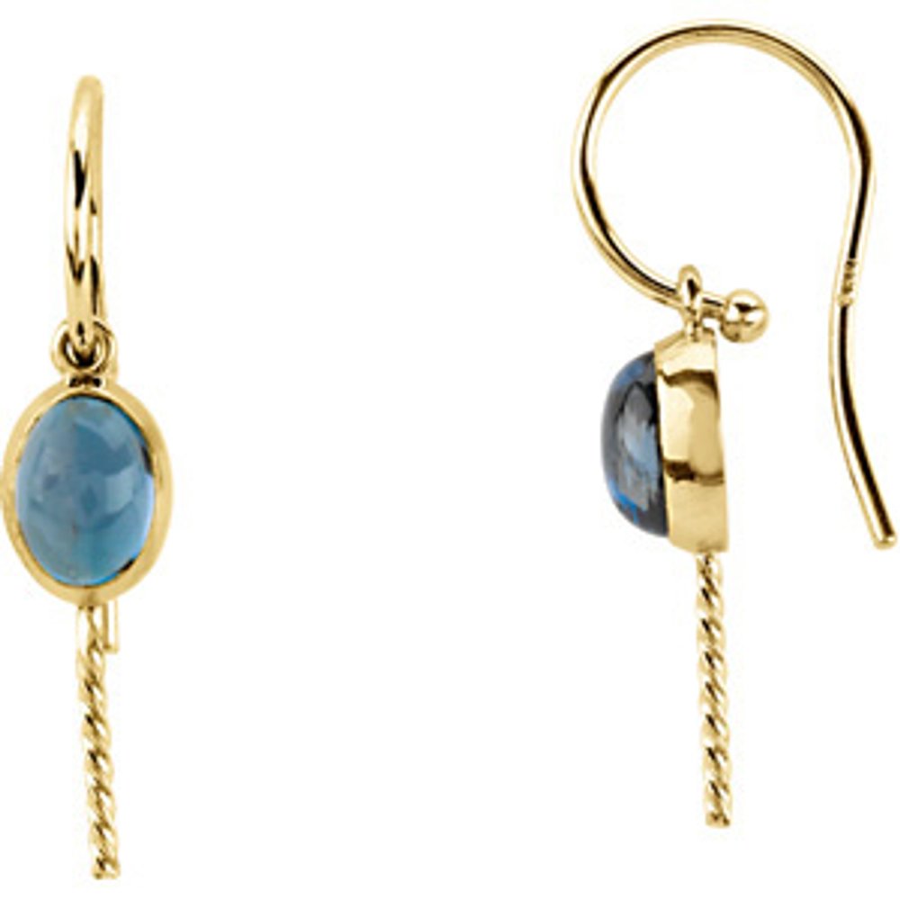 14k Yellow Gold 7x5mm Oval Shape London Blue Topaz Semi-Set Drop Dangle Earrings Mounting for 11mm Pearls (Mounting Only, Not All Stones Included)