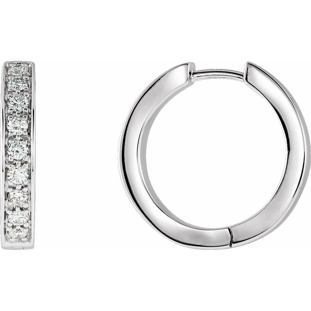 14k White Gold Cubic Zirconia Inside-Outside Hinged 18.5mm Hoop Drop Dangle Earrings