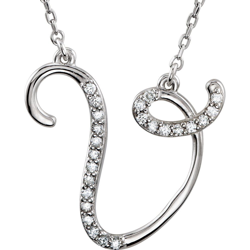 Description: Sterling Silver 1/8 cttw Diamond Initial V 16" Necklace