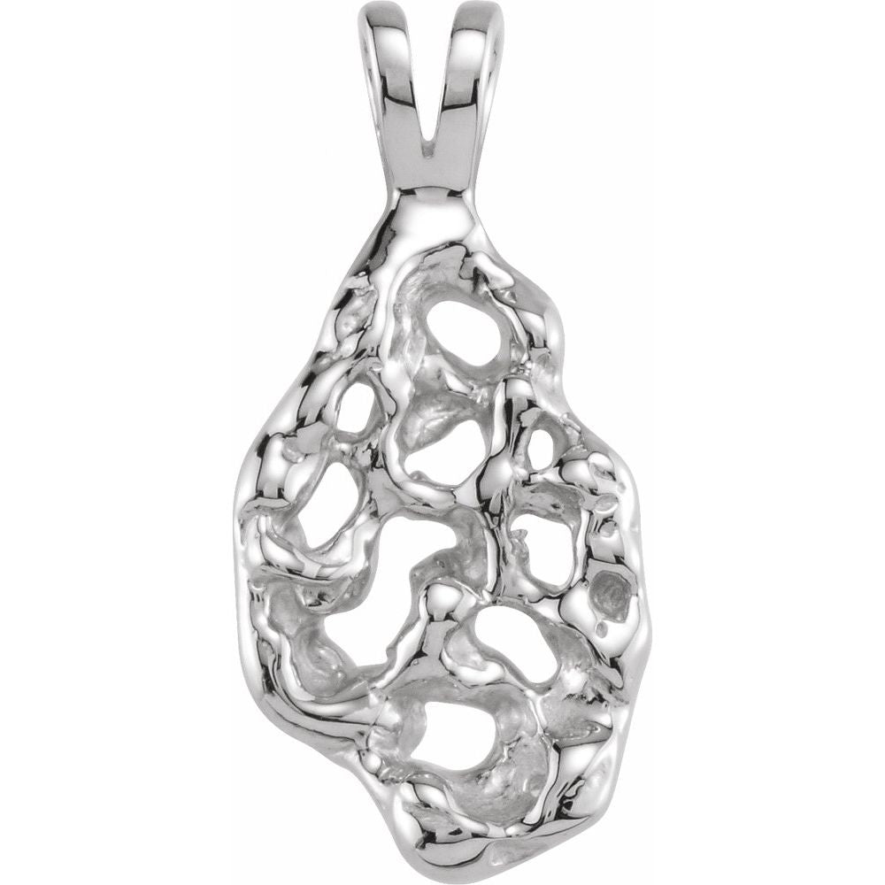 Semi-Polished 14k White Gold Nugget Pendant (23x11mm)