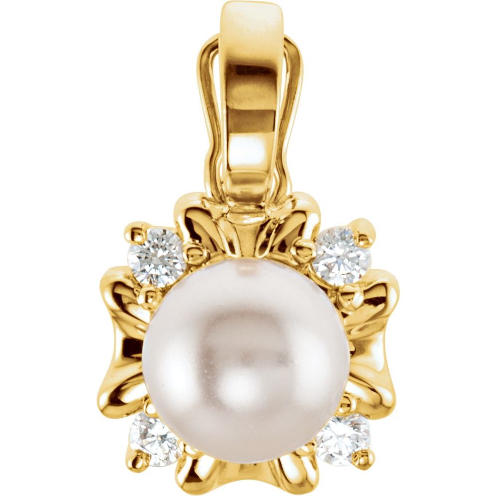 18k Yellow Gold Pendant Enhancer for 7mm Pearl for Approximately 1/8 cttw (Mounting Only, Not All Stones Included)