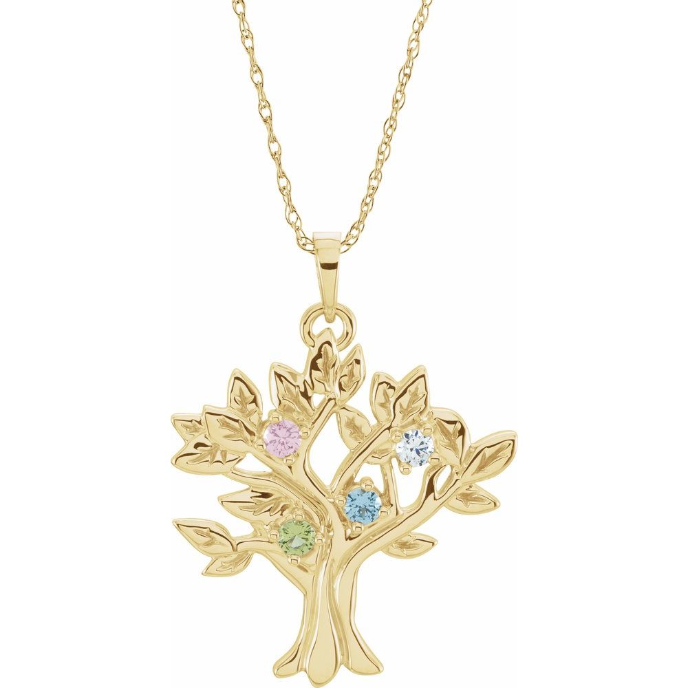 10k Yellow Gold Round Shape 4-Stone My Tree Family Necklace (31x27.5mm, Mounting Only, Not All Stones Included), 18"
