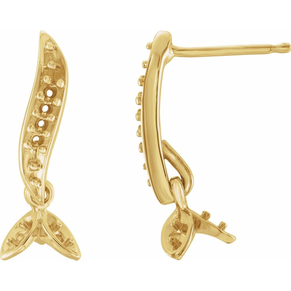 10k Yellow Gold Drop Dangle Earrings Mounting for 7mm Pearl (Left Side Mounting Only, Not All Stones Included)