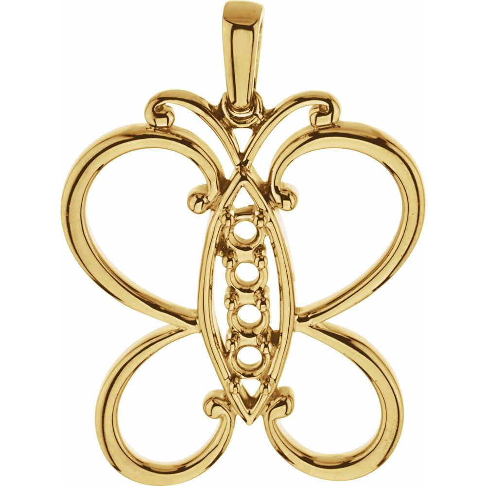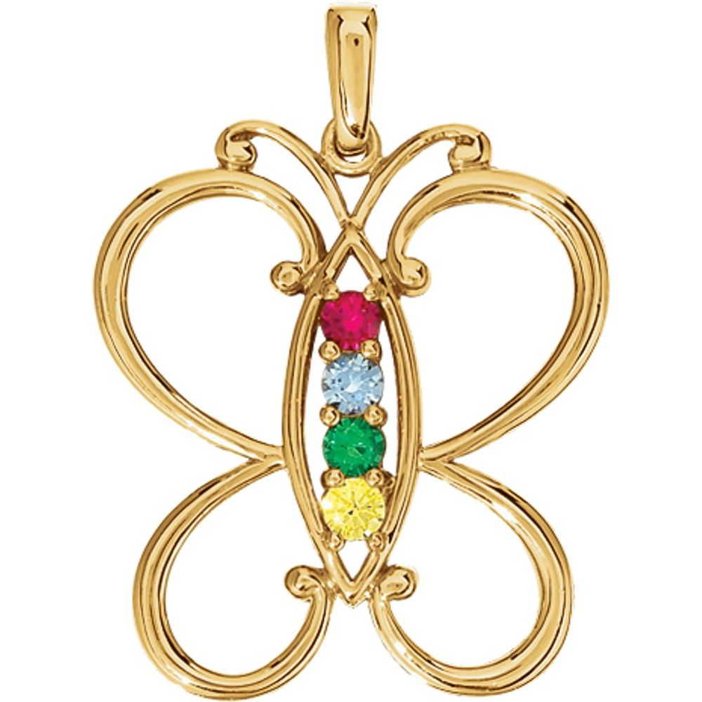 Description: 10k Yellow Gold 4-Stone Family Butterfly Pendant Mounting