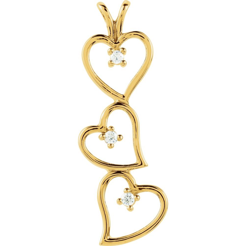 10k Yellow Gold Triple Heart Shape Pendant for Approximately 0.06 cttw (32.5x11.5mm, Mounting Only, Not All Stones Included)