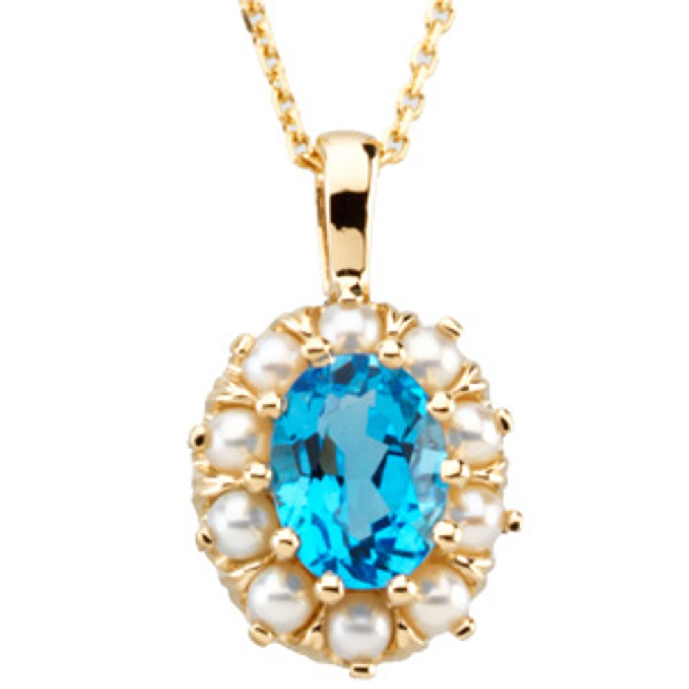 Description: 14k Yellow Gold 8x6mm Oval and Seed Pearl Pendant Mounting