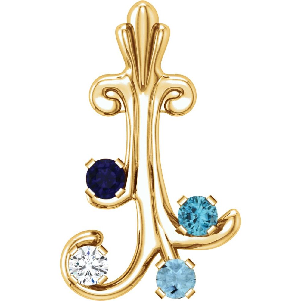 Description: 10k Yellow Gold 4-Stone Family Scroll Pendant Mounting