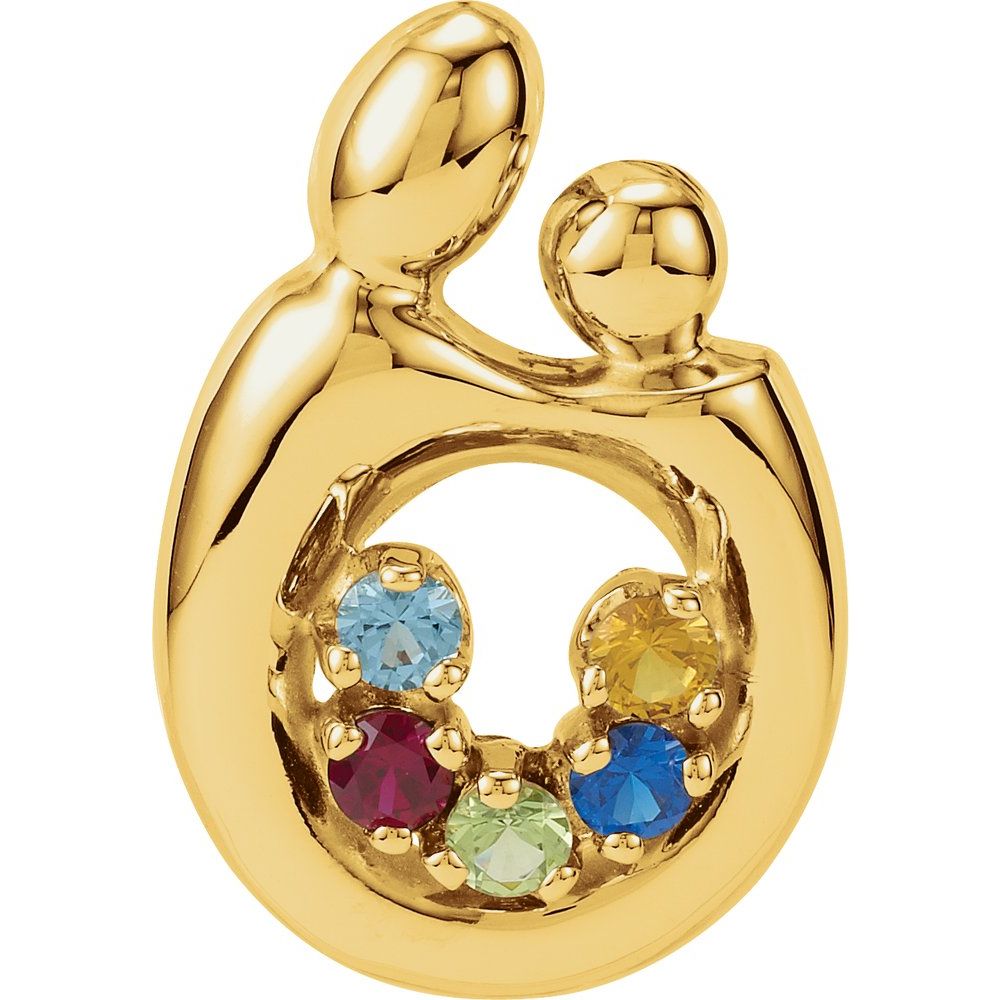 Description: 10k Yellow Gold 5-Stone Mother and Small Person Family Slide Pendant Mounting