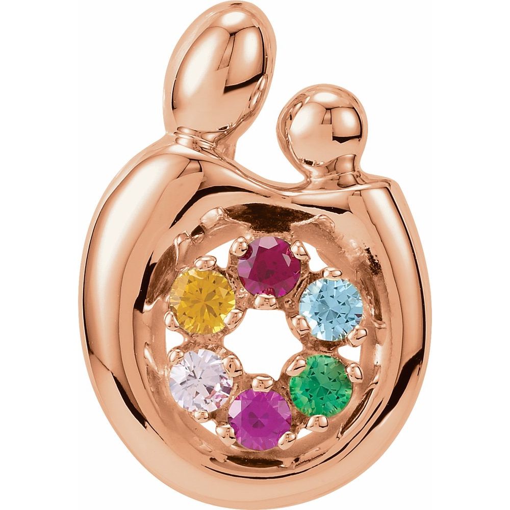 Description: 14k Rose Gold 6-Stone Mother and Small Person Family Slide Pendant Mounting