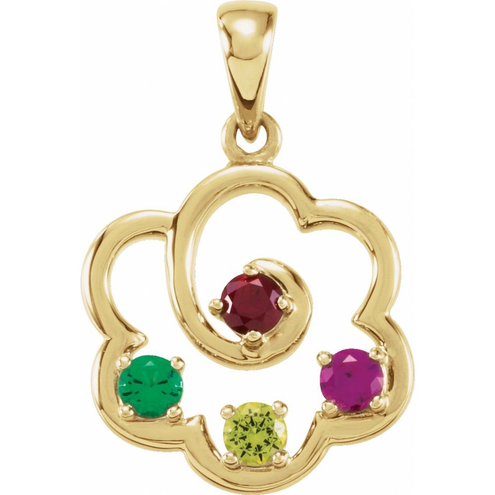 Description: 14k Yellow Gold 4-Stone Family Flower Pendant Mounting