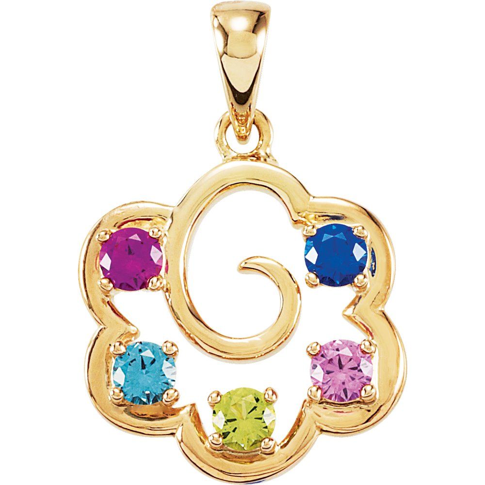14k Yellow Gold Round Shape 5-Stone Family Flower Freeform Pendant for Approximately 1/2 cttw (23x15mm, Mounting Only, Not All Stones Included)